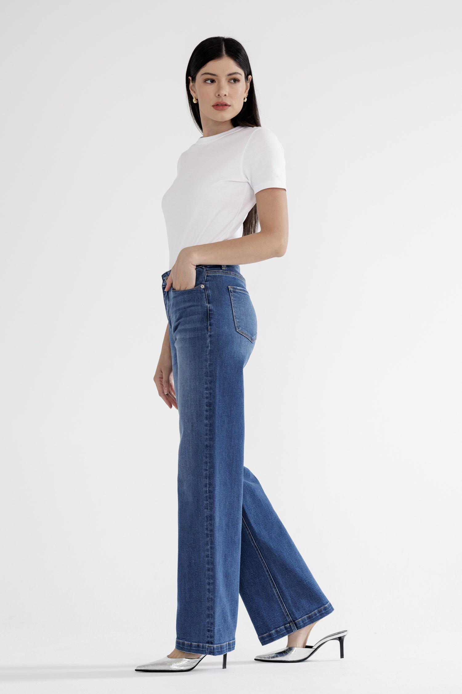 Elevated silhouette meets modern comfort in this wide-leg design. The high-rise cut flatters your frame while stretch fabric moves with you throughout the day. Captain Blue Mica delivers timeless denim style with the flexibility you need.