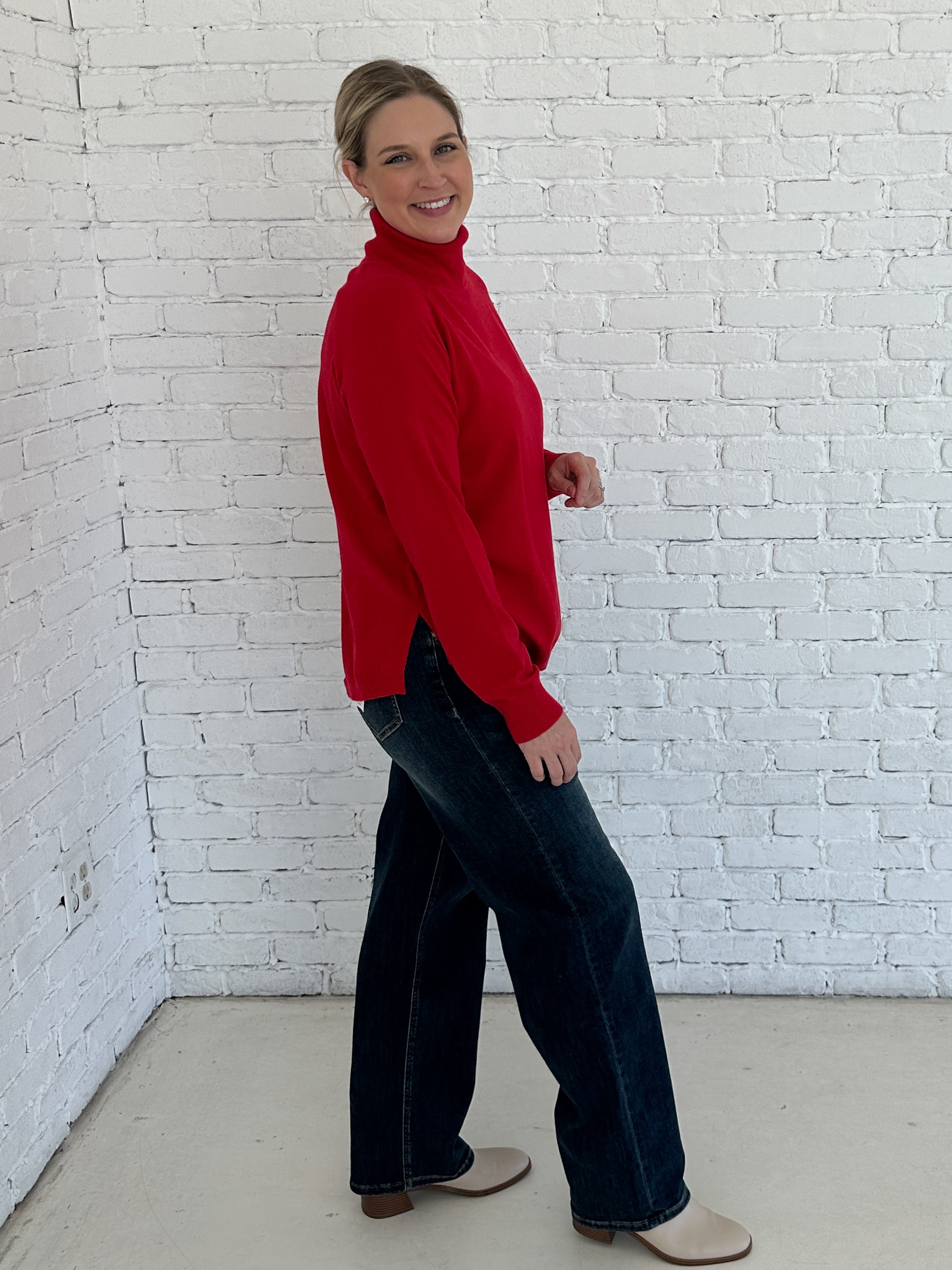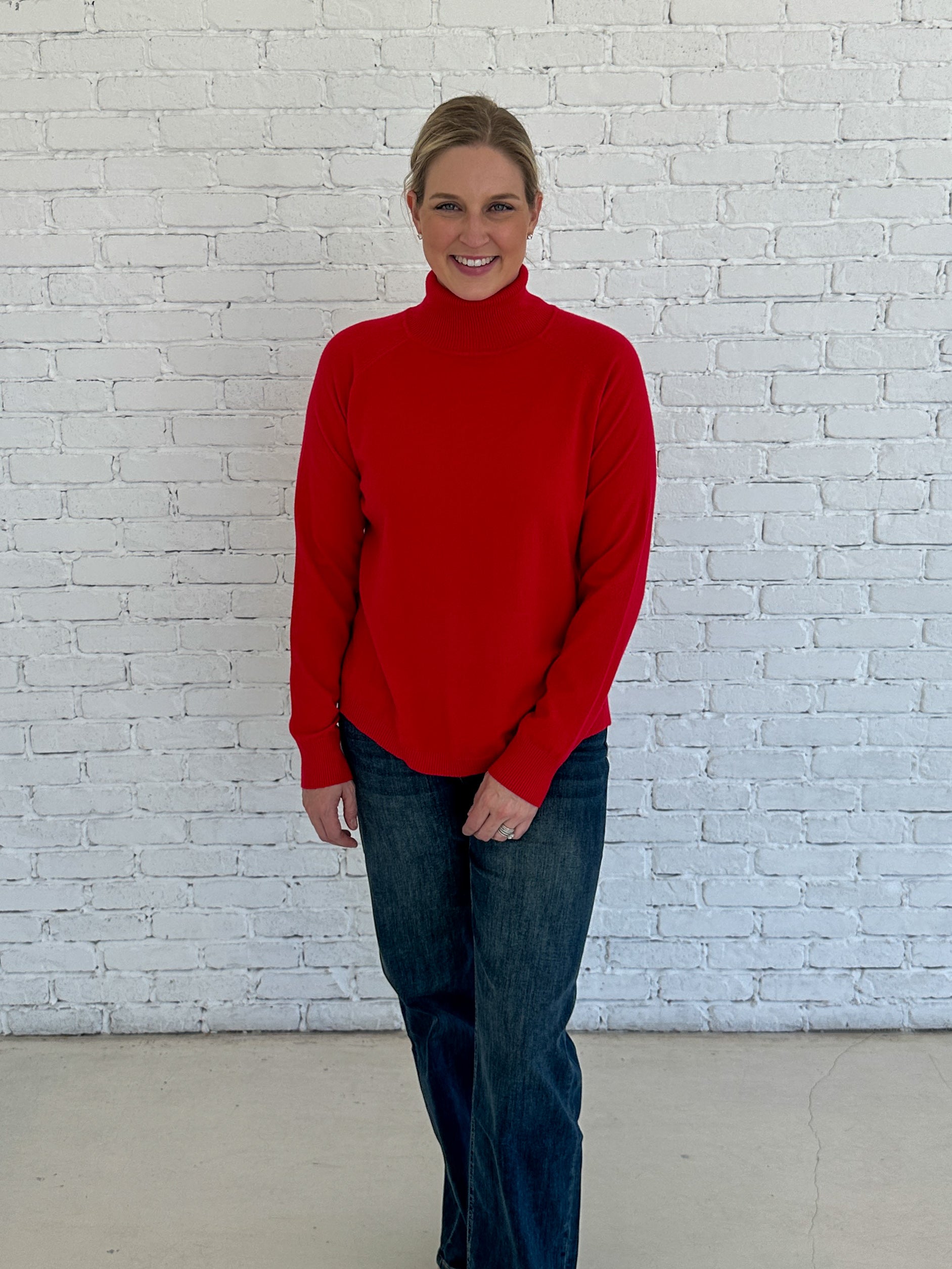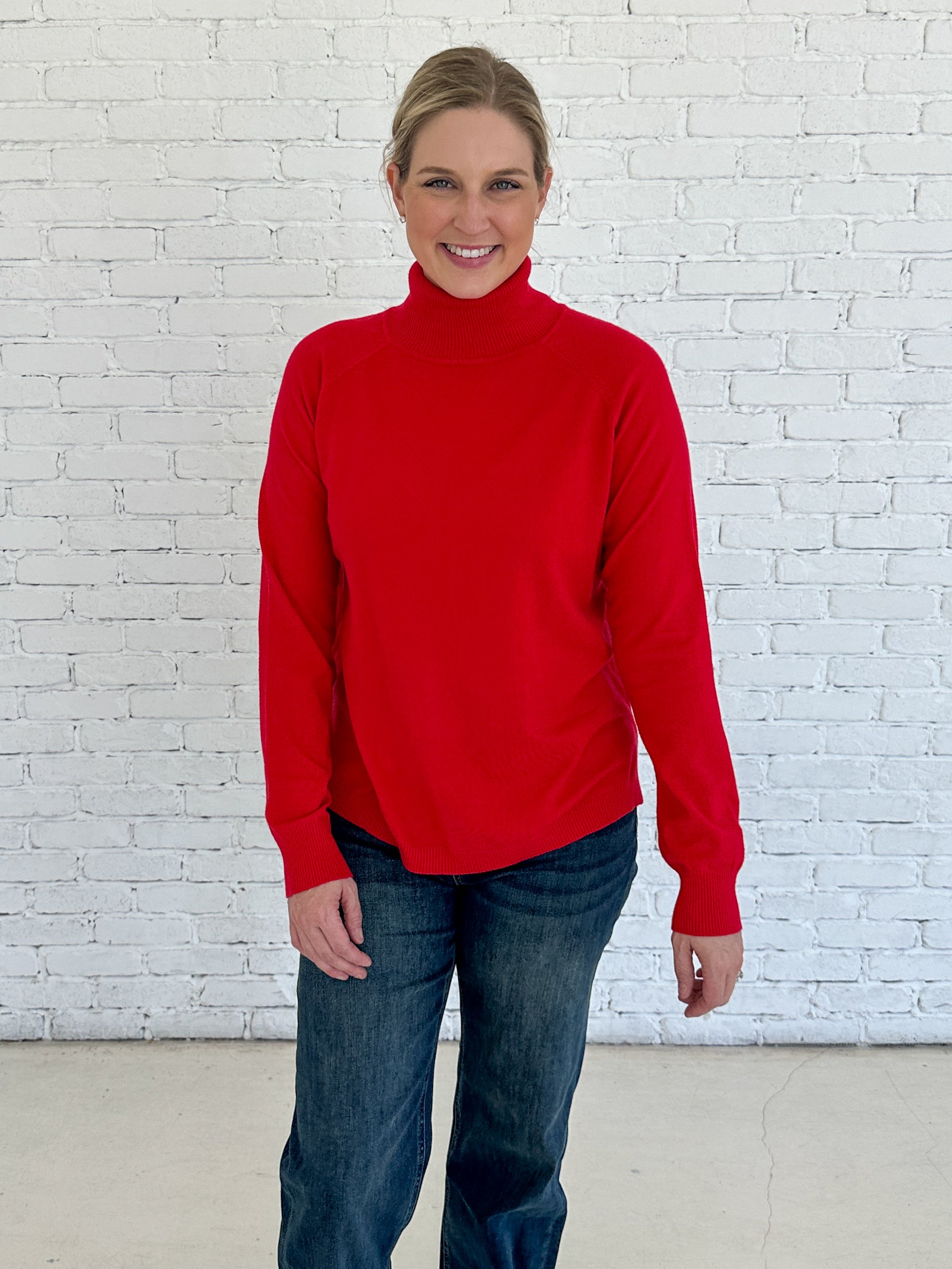 Experience effortless style and comfort with this Red Turtle Neck Sweater. Featuring a cozy turtle neck and flattering raglan sleeves, this full-length pullover offers warmth without sacrificing mobility. Perfect for layering or wearing on its own, it combines casual elegance with everyday practicality. Elevate your wardrobe with this versatile essential. S-XL