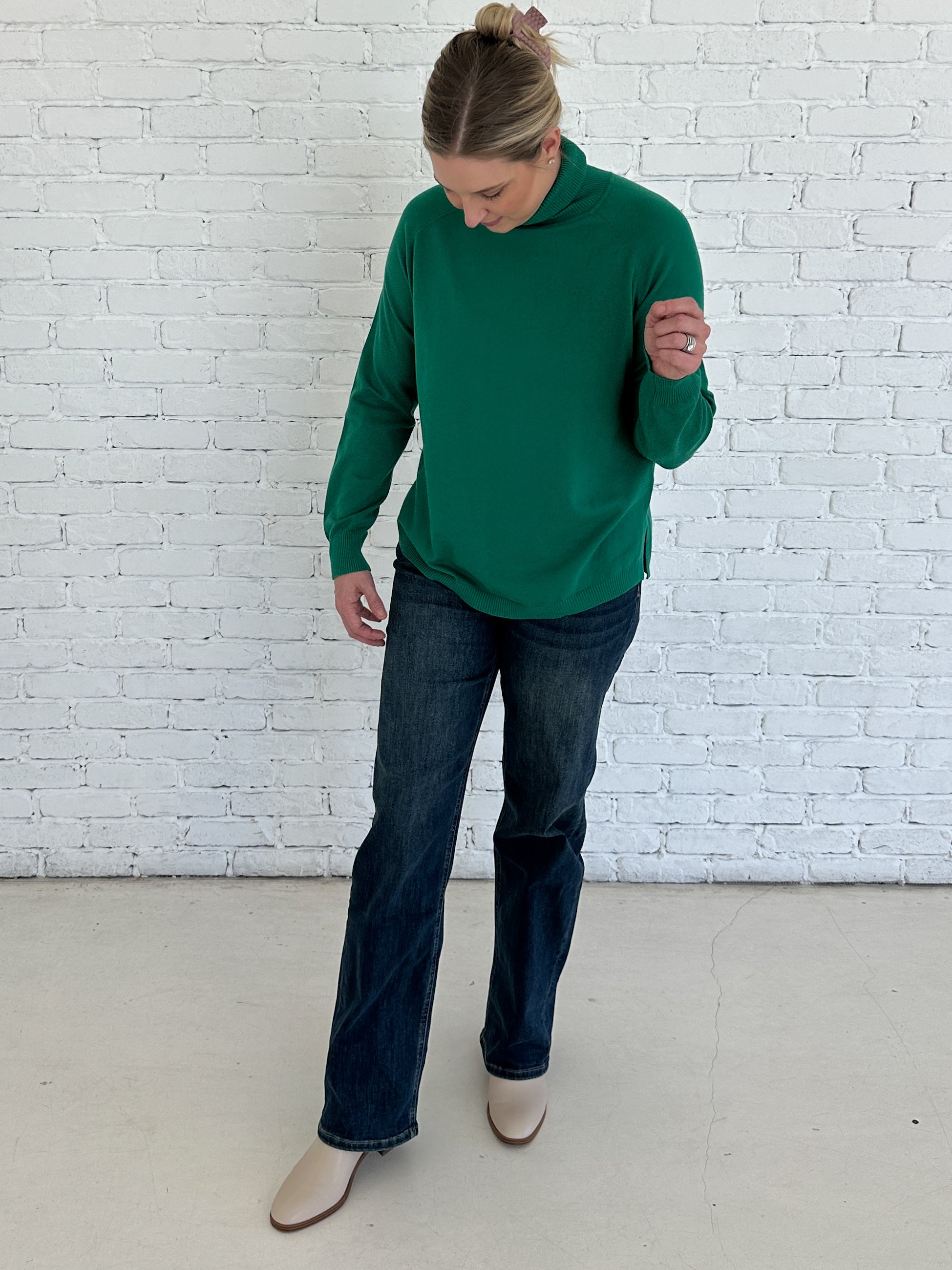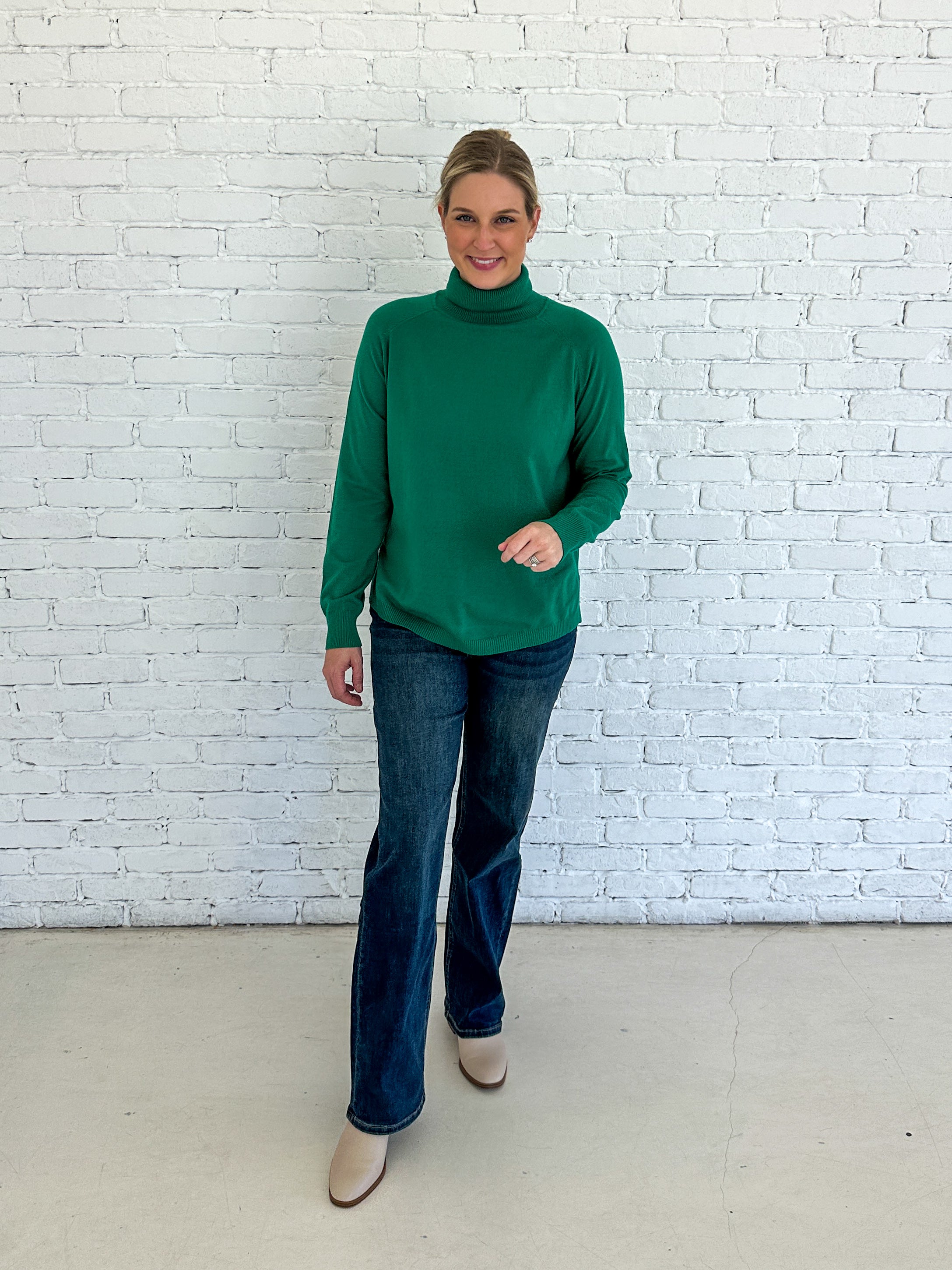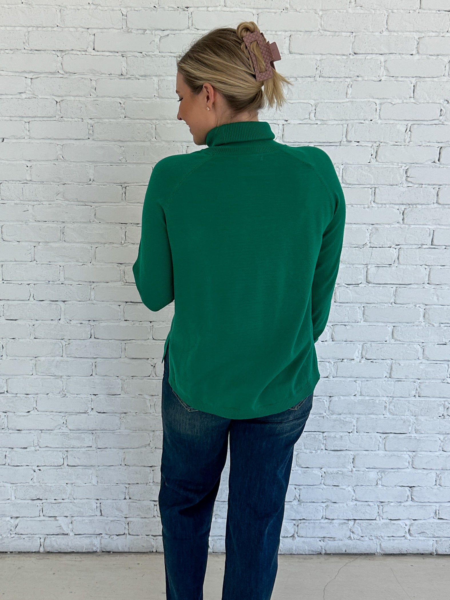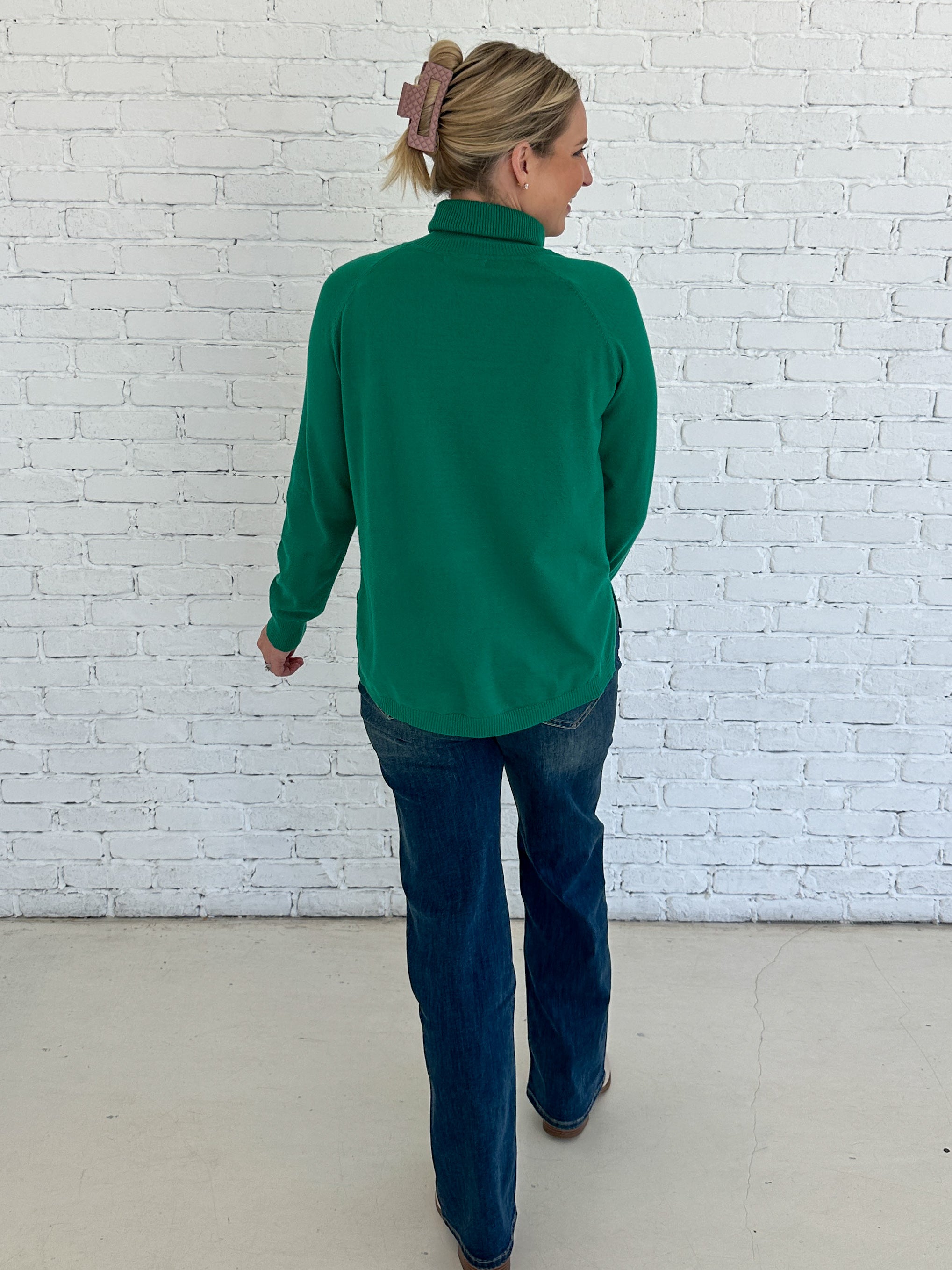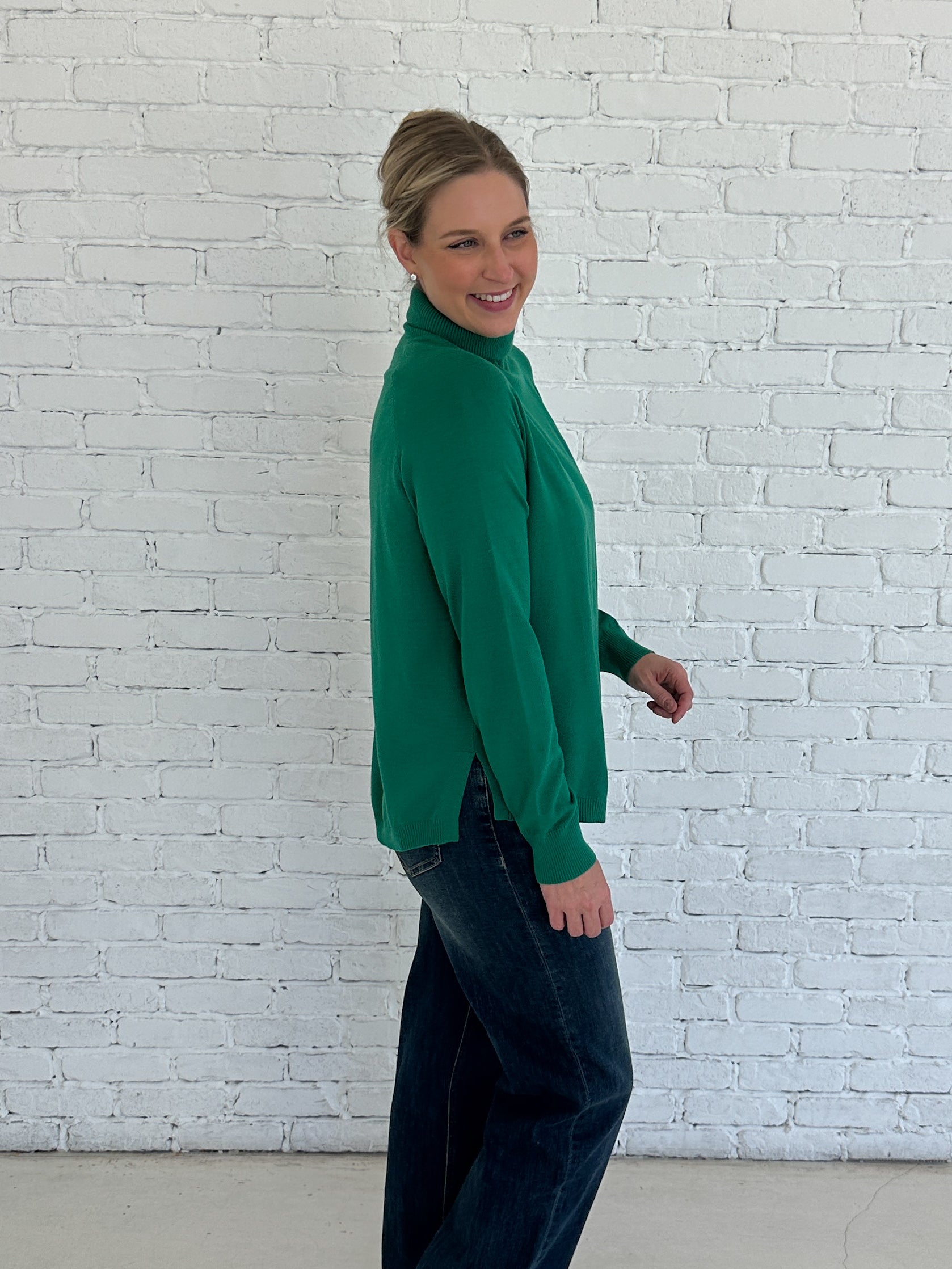 Experience effortless style and comfort with this Green Turtle Neck Sweater. Featuring a cozy turtle neck and flattering raglan sleeves, this full-length pullover offers warmth without sacrificing mobility. Perfect for layering or wearing on its own, it combines casual elegance with everyday practicality. Elevate your wardrobe with this versatile essential. S-XL