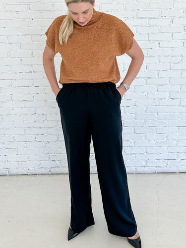 Elevate your wardrobe with the Black Elegance Pant, perfectly designed as a set with our Bow Elegance Top. These pull-on pants feature a comfortable elastic waistband for easy wear and a flattering fit, combining style and ease. Ideal for both casual and dressy occasions, they offer effortless sophistication and all-day comfort. S-L