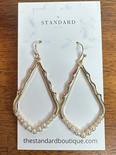 Soft, feminine, and effortlessly romantic — the Ophelia Earrings feature a wavy gold teardrop frame accented with delicate pearl detailing along the bottom. Lightweight and eye-catching, these earrings add an instant touch of polish to any outfit.